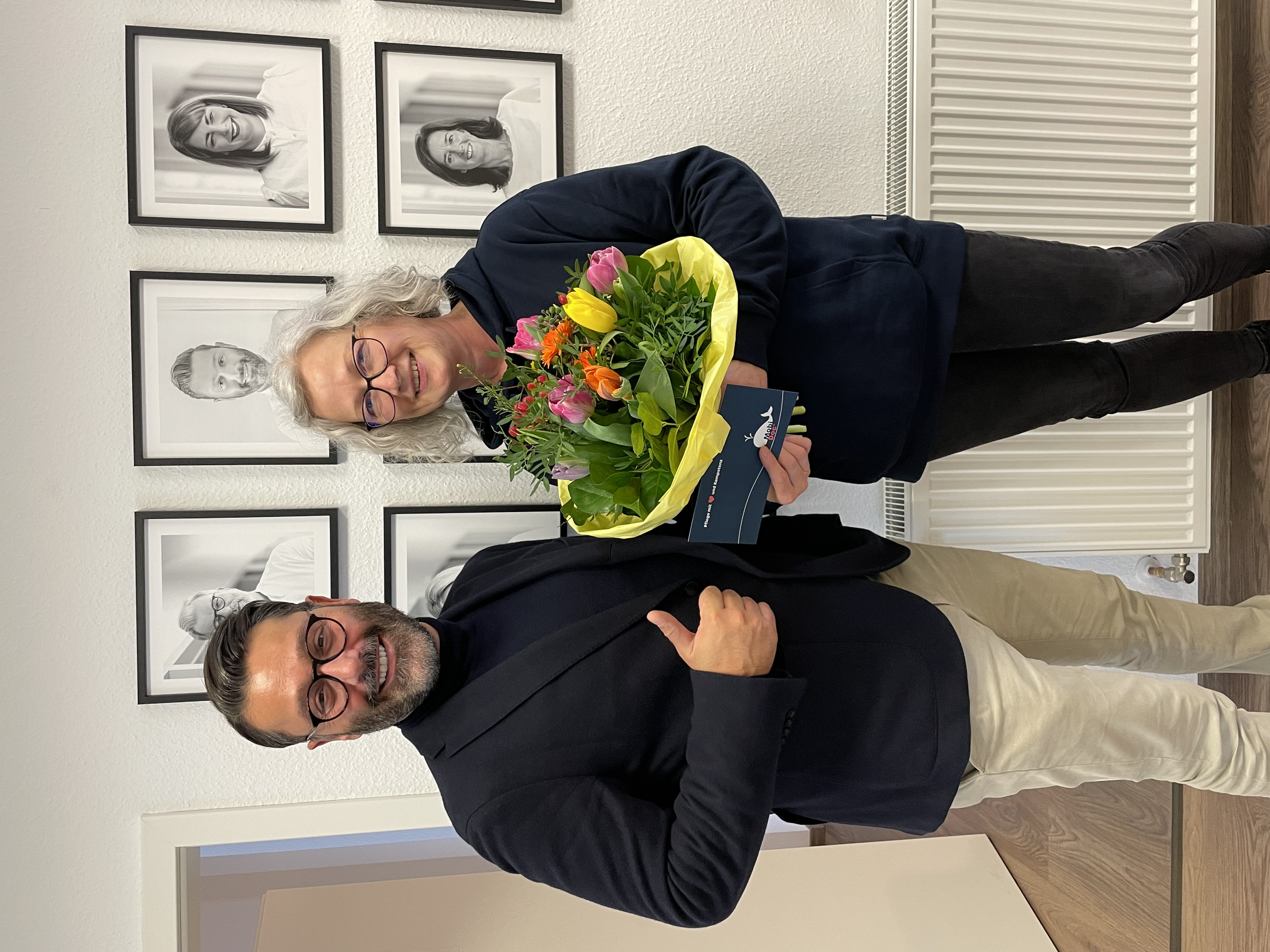 Unser Geschäftsführer, Herr Dr. Ahmet Özkapi, ließ es sich nicht nehmen, ihr auf besondere Art und Weise zu ihrem Jubiläum zu gratulieren – neben persönlichen Worten überreichte er ihr einen großen Blumenstrauß als Zeichen seiner Dankbarkeit und Wertschätzung.