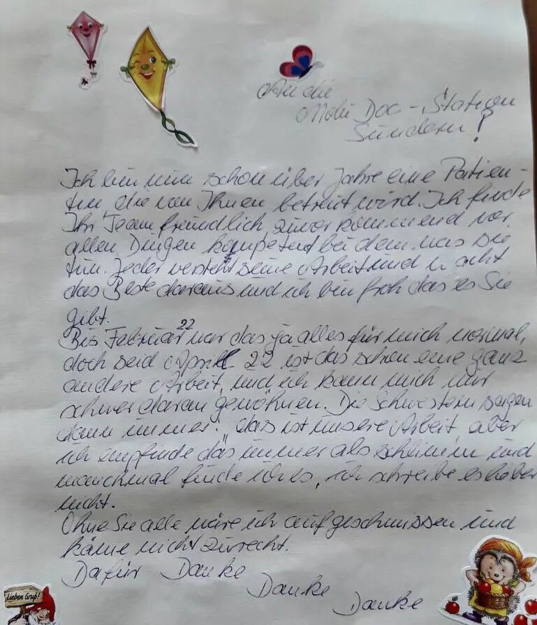 Herzlichkeit, Freundlichkeit und Kompetenz sehen WIR jeden Tag als selbstverständlich an. Ein besonderer Brief, mit einem wundervollen Dankeschön, soll Ihnen nicht vorenthalten bleiben.