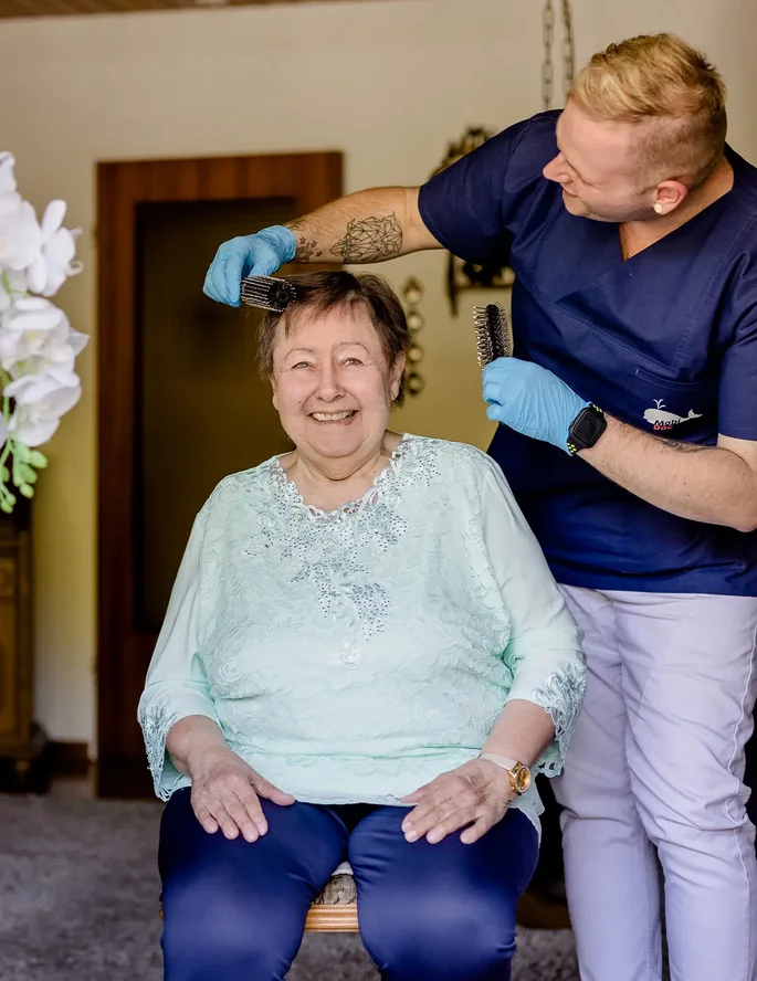 Unser Beruf ist das Richtige für alle, die kontaktfreudig, einfühlsam und verantwortungsbewusst sind und ganz viel Freude am Umgang mit Menschen haben. Unser Lernfeld umfasst medizinische, soziale und psychologische Bereiche. Wir pflegen im häuslichen Bereich, beraten und unterstützen unsere Kund:innen.